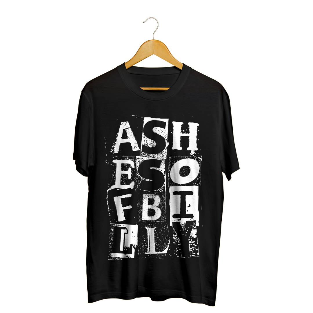 New design from ASHES OF BILLY. White logo on black T-shirt.